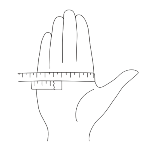 Bestimmen Sie Ihre Handschuhgrösse, indem Sie den Umfang Ihrer Handfläche an der breitesten Stelle (ohne den Daumen) messen.